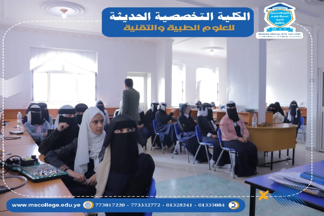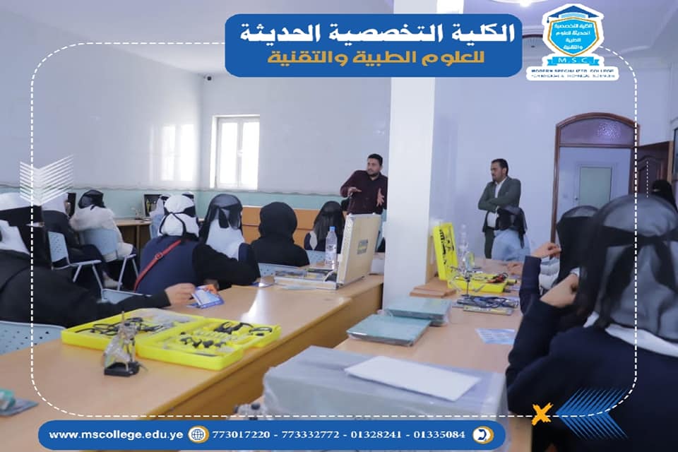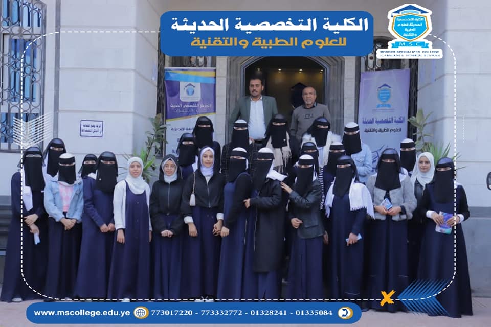 والاستاذ / عبدالملك الدقري، والاستاذة / ساميه الرداعي ، الاستاذ/ عائض العليي مدير الموارد البشرية والشؤن الادارية بالكلية. اطلعوا على معامل الكلية ومرافقها وماتمتلكه الكلية من تخصصات حديثة وعصريه مواكبة للتقدم العلمي محليا واقليميا وعالميا. واستمعوا من الكادر الاكاديمي إلى شروحات مختصره عن تخصصات الكلية (هندسية، تقنية، ادارية، طبية) وتوجهاتها الحديثة ومميزات الكلية على مستوى البرامج والتخصصات والبنية التحتية التي تمثل مرتكز اساسي وهام في العملية التعليمية.